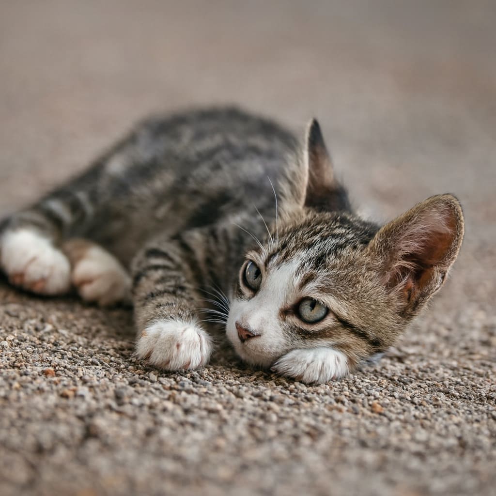 Совсем еще молодой кот лежал на дороге, рядом с обочиной, и в его глазах совсем не было радости.