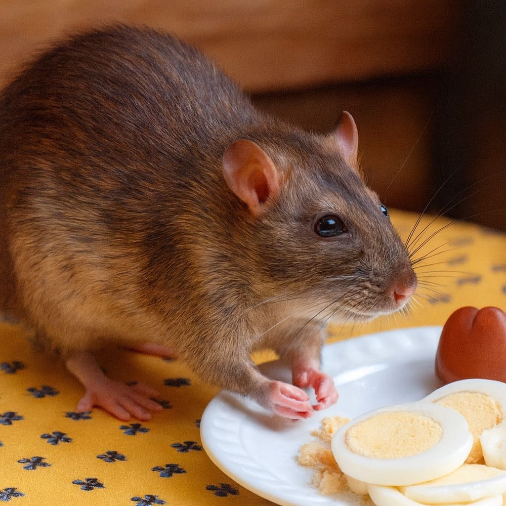 На стуле сидела Бони и смотрела испуганными глазками на женщину, а за её спиной прятались четыре крысёнка.