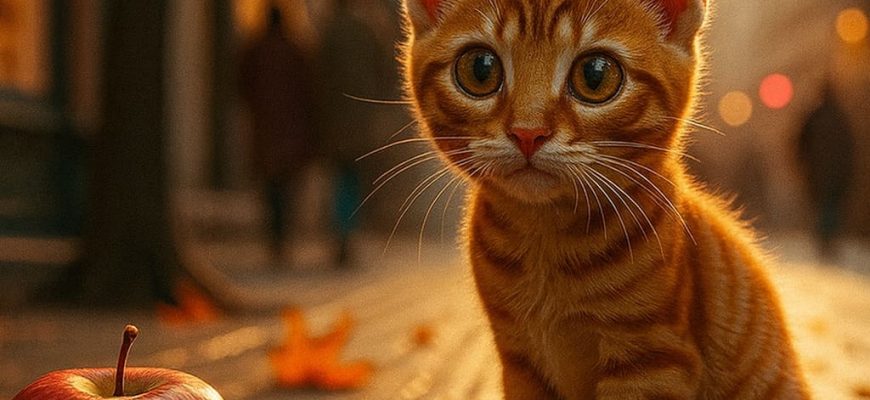 Худой кот приходил к магазину за едой — только одна бабушка поняла, почему он не ел ничего, кроме яблок