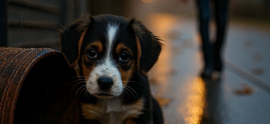 Брошенный щенок стоял под дождём у светофора — никто даже не догадывался, что однажды он спасёт целый город