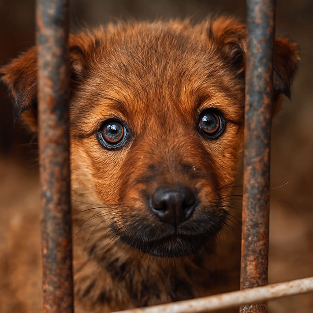 Она пошла на звук и обнаружила застрявшего в рабице лапой маленького щенка. Совсем крохотный, он жалобно смотрел на неё, пытаясь выдернуть лапку…