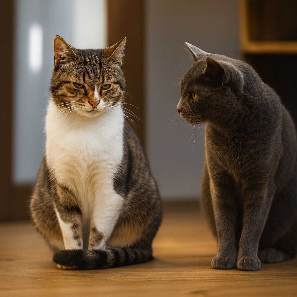Два кота, один старый и один молодой, сидели и наблюдали за хозяйкой. Молодой говорил старому: