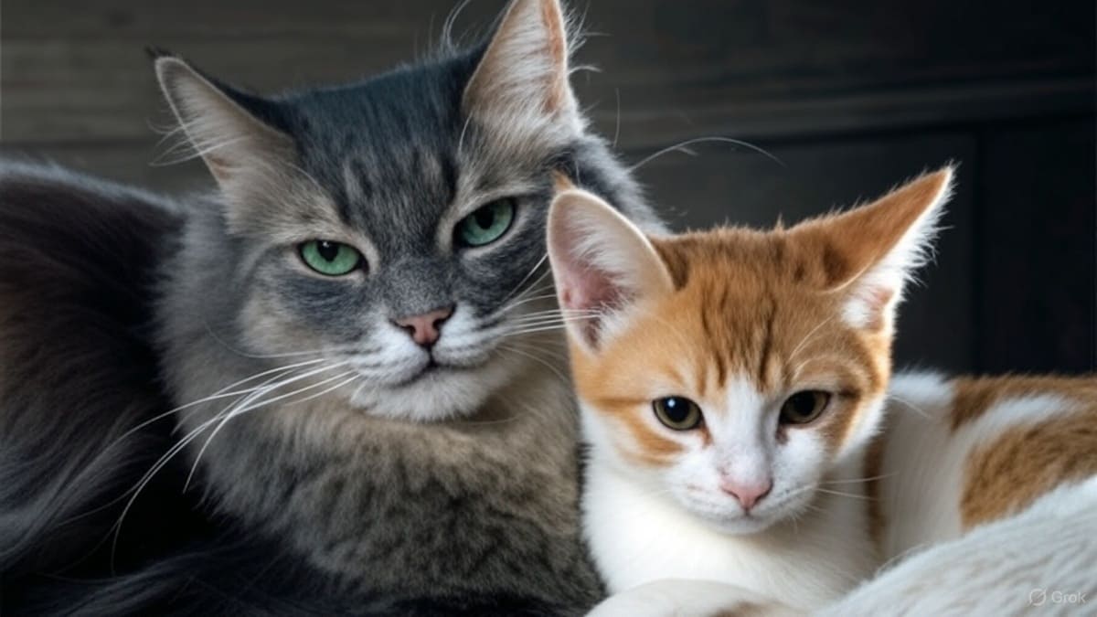Серая кошка выглянула в коридор. За ней выскочил кошачий рыжий подросток.