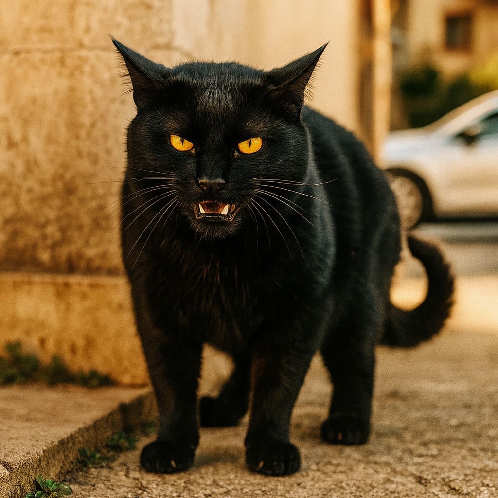 Они гуляли, как обычно, не торопясь и беседуя по душам, как вдруг из кустов с воем выскочило угольно-чёрное чудовище и зашипело не вовремя разбуженной гадюкой.