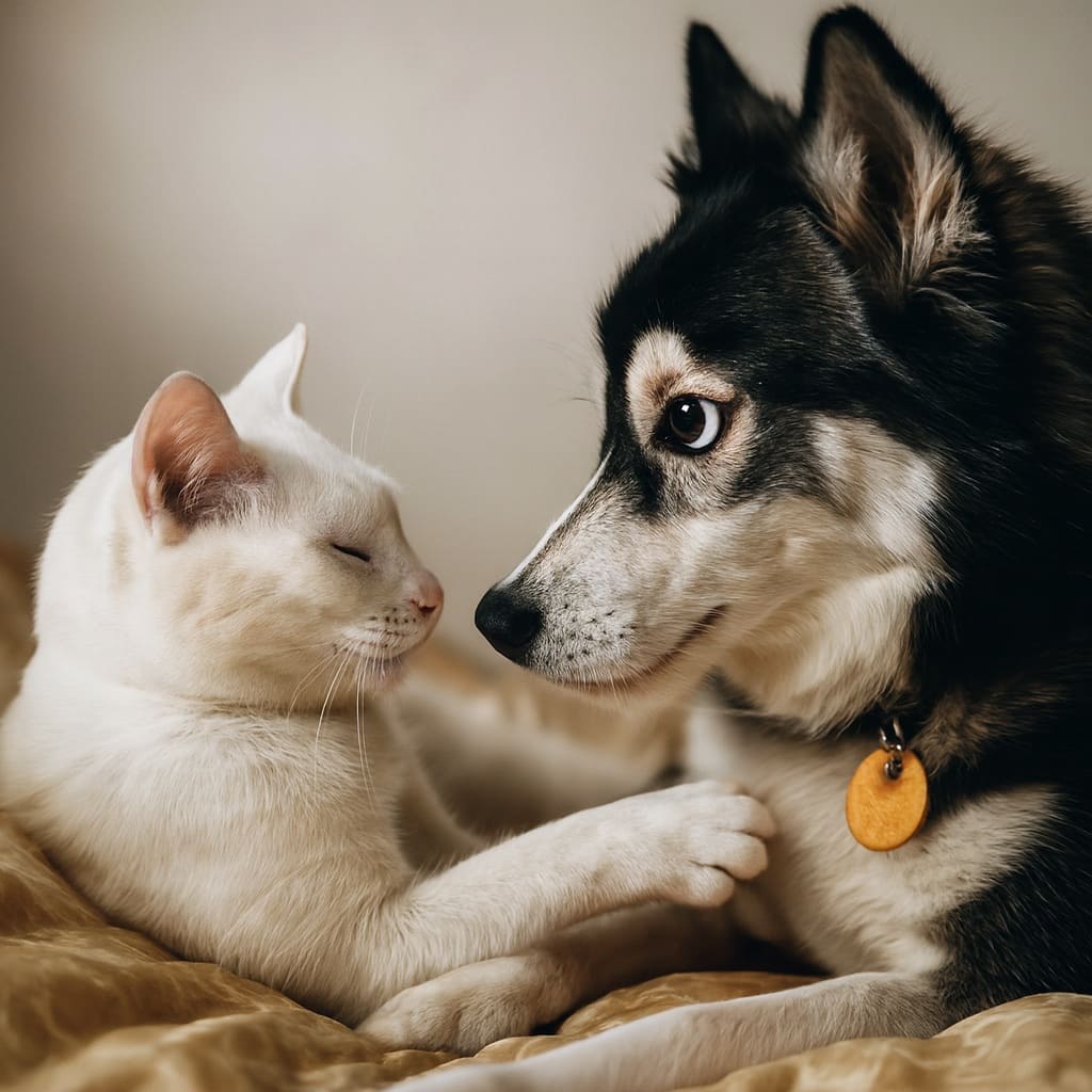 Джулька, почувствовав неуверенность и непроходящий страх Белочки перед улицей, старалась развеселить ее и уверить, что она в квартире абсолютно не лишняя, и даже наоборот – желанная для всех. Всякий раз, когда мордочка кошки оказывалась в зоне досягаемости язычка собачки, она ласково ее лизала, что доставляло обеим удовольствие.