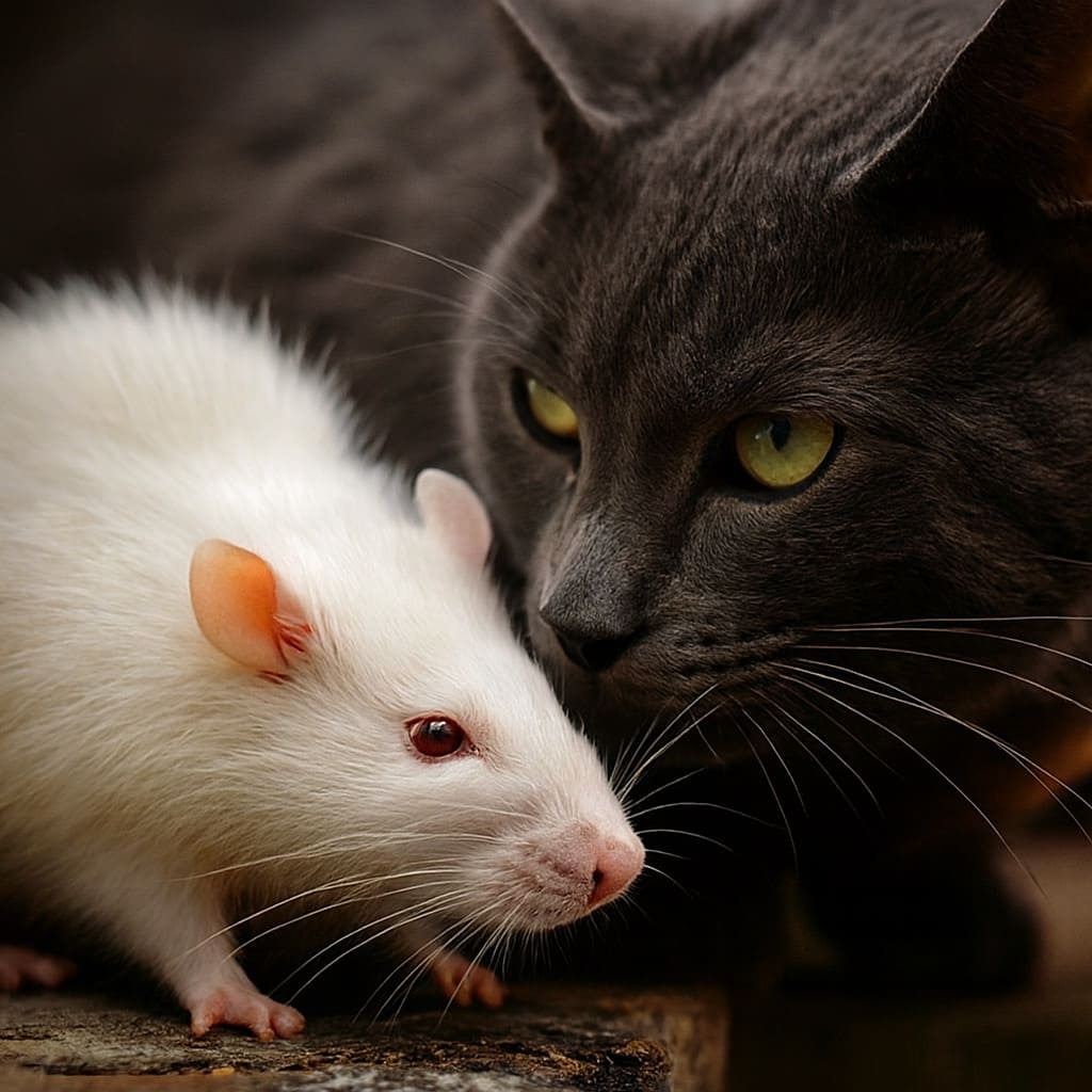 Оказалось, зять маминой кумы таким образом «кота дрессирует», специально для этих целей купил крысу и натравливает на нее кота.