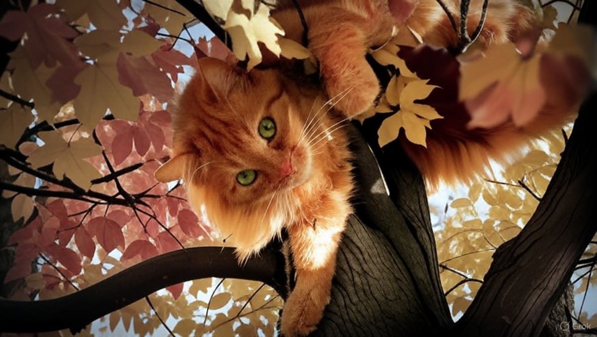 Вера посмотрела наверх и не сразу поняла, откуда доносится мяуканье. Но это определенно был ее кот. Так и оказалось. Лаки сидел на дереве и явно не мог спуститься вниз самостоятельно.