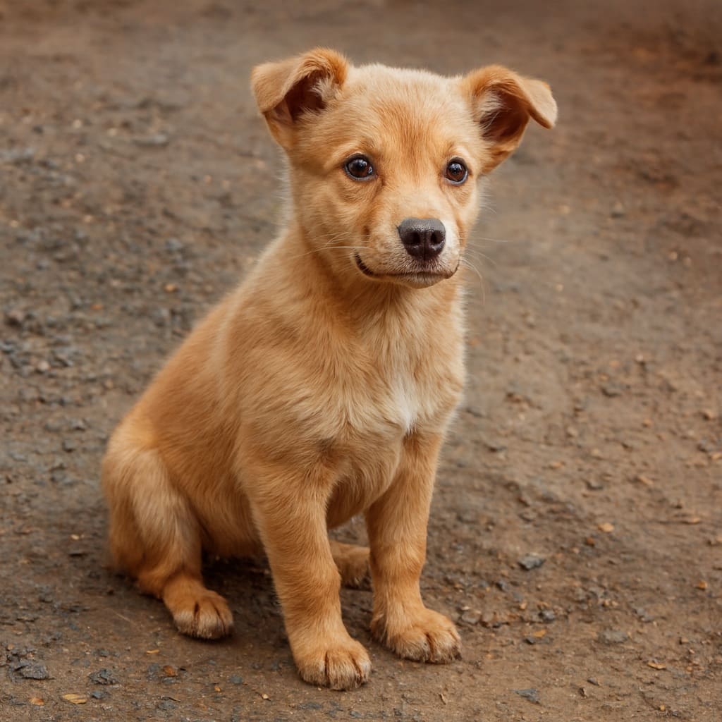 Двухмесячный щенок сидел один — всех братьев и сестёр уже разобрали. Осталась «девочка» светлого окраса с разбросанными по спине коричневыми пятнами.