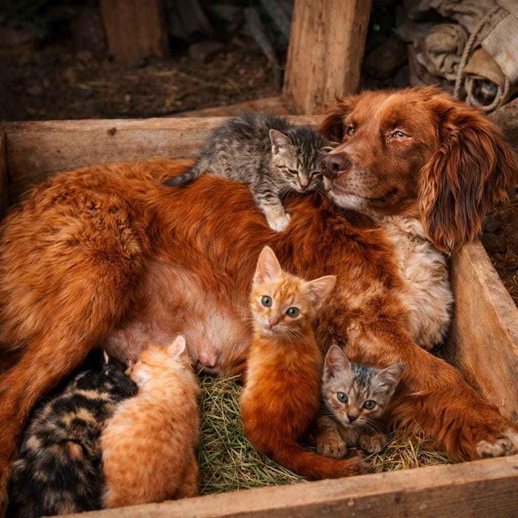 — Собачка тут одна у нас появилась недавно, — продолжила бабушка. — Пришла и усыновила несколько котят, оставшихся без матери. Кормит их своим молоком, стала худая, как щепка…