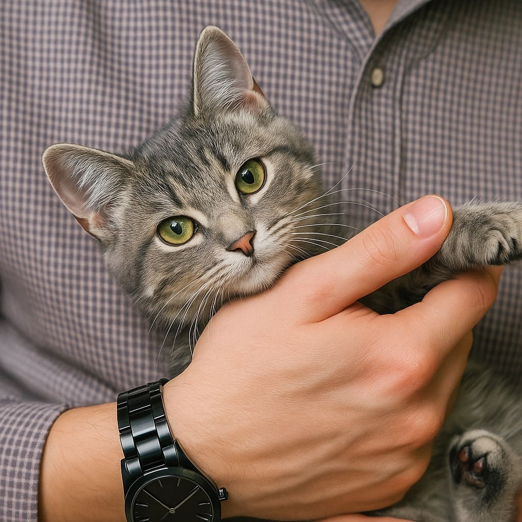 Там он поймал котёнка, спрятал его за пазуху в куртку, поправил доски и добрался назад, передвигаясь по ним на четвереньках.