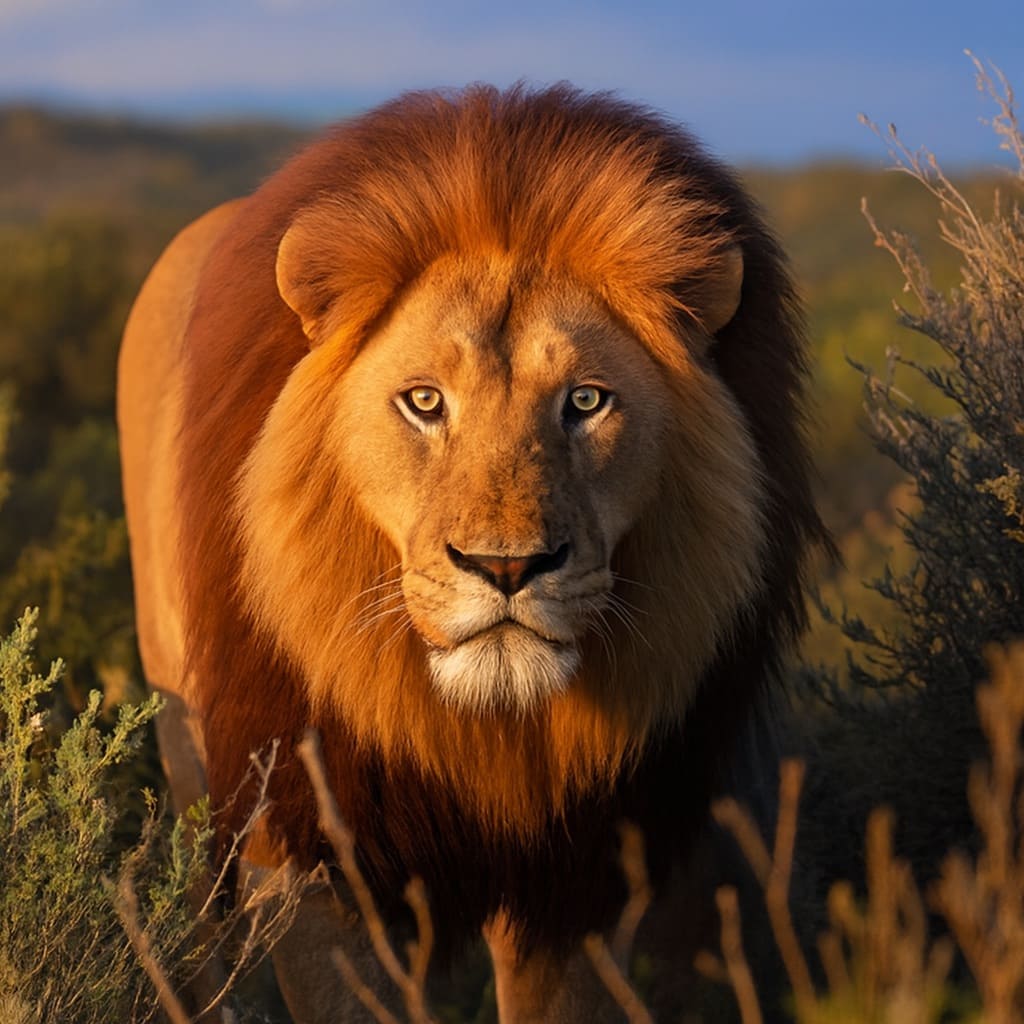 Он сам не знал, чего он ждал. Но в тот момент, когда они проезжали мимо небольшой рощицы пальм, из высокой травы вдруг выпрыгнул огромный лев!