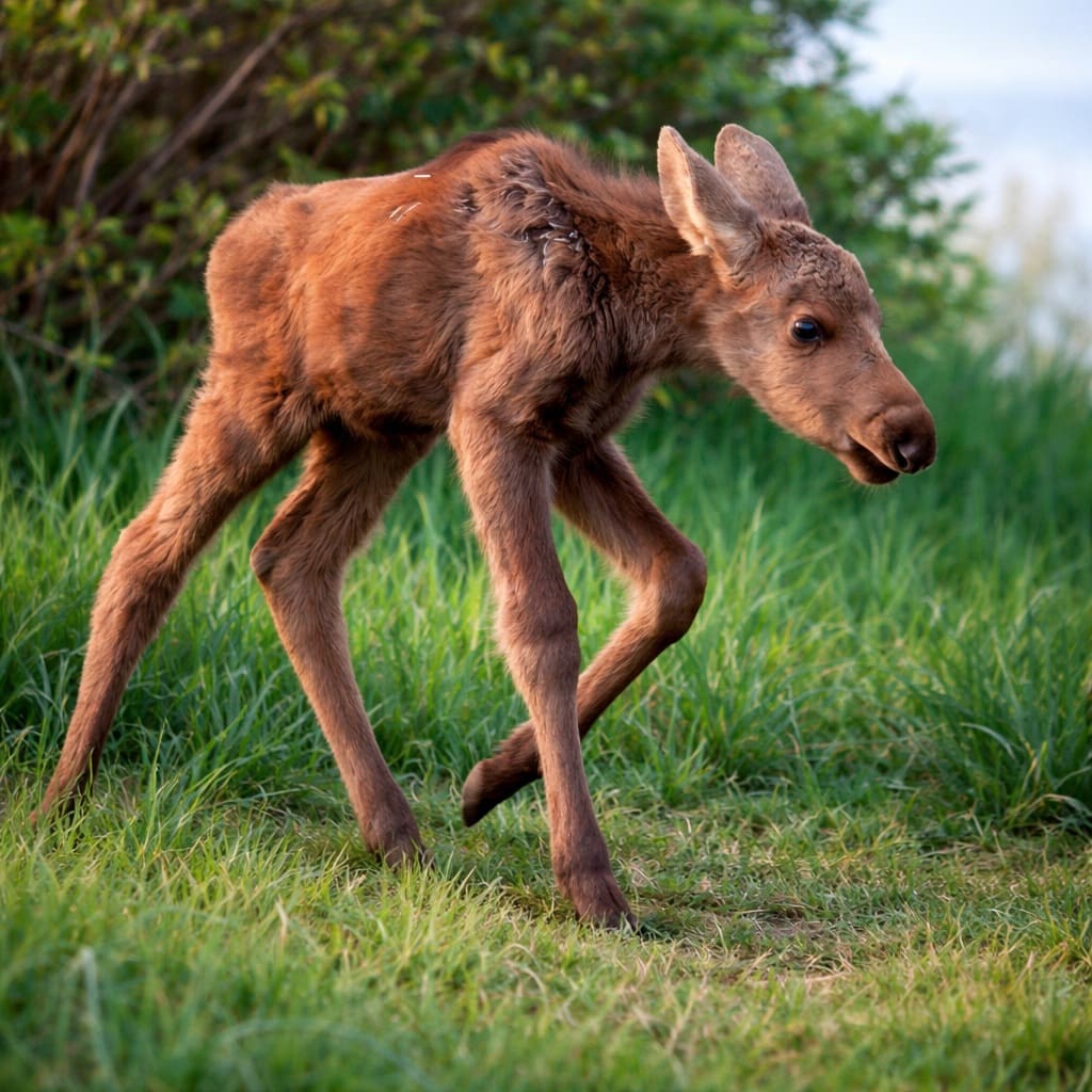 Это был совсем маленький, несколько дней от роду, лосёнок. Зрение у маленьких лосят совсем плохое, а потому малыш беспомощно топтался на одном месте и жалобно плакал.