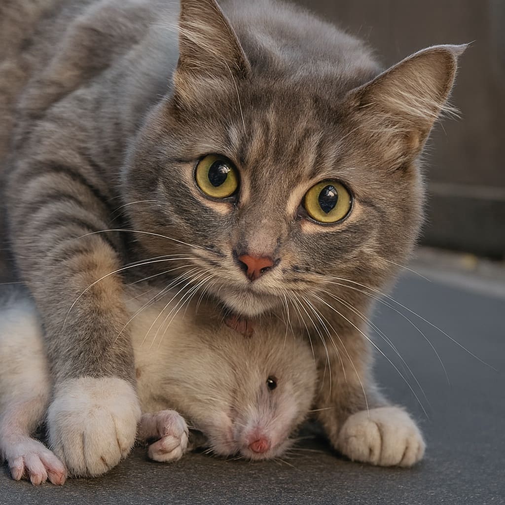Миниатюрная полосатая кошечка с огромным любящим сердцем бросилась наперерез рычащей угрозе и закрыла собой котенка. Муся почувствовала, как зубы прокусили её бок.