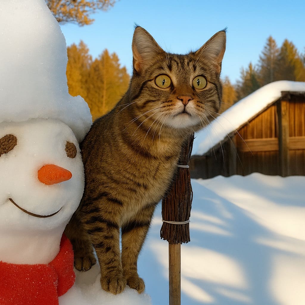 Кот молодецки вспрыгнул на снежную макушку, качнулся туда-сюда и… баба осталась безголовой.
