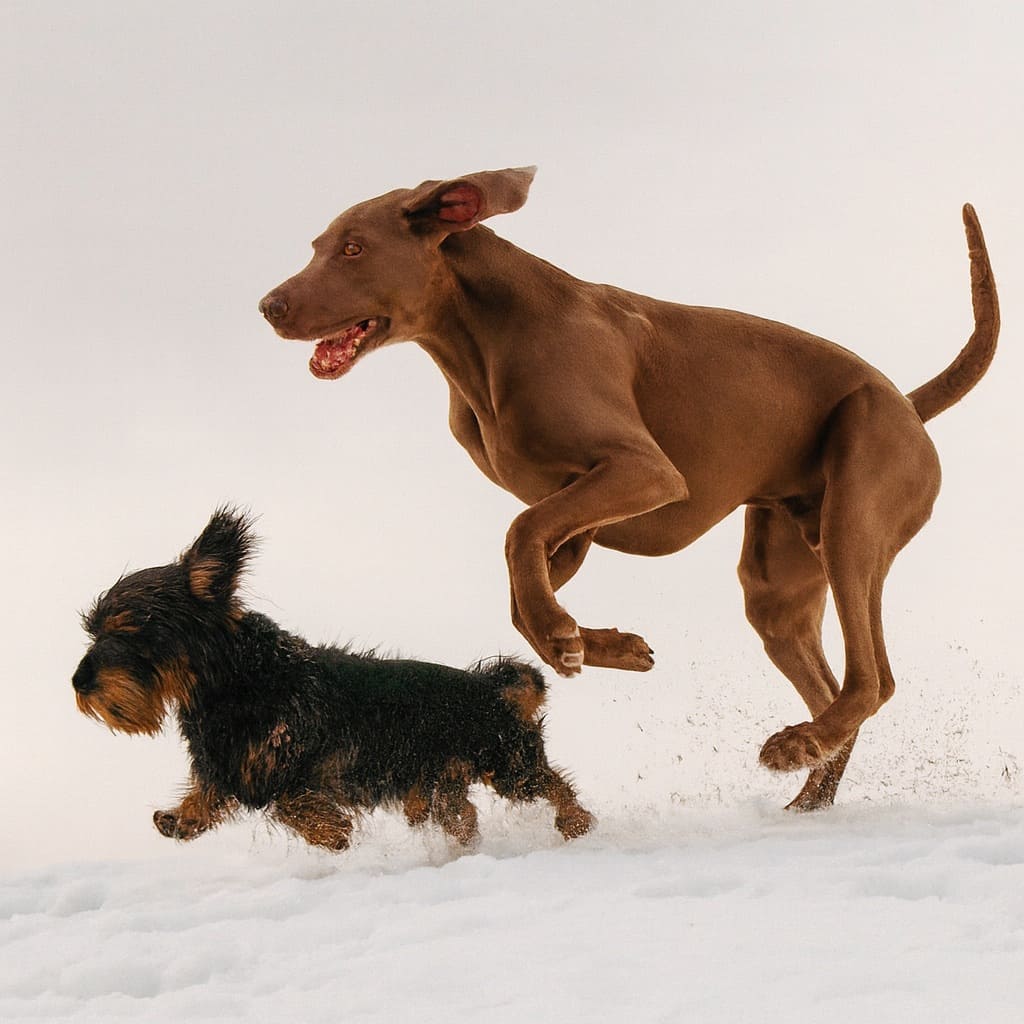 Четыре “мушкетёра” — дог по имени Баг и три маленькие, смешные собачки.