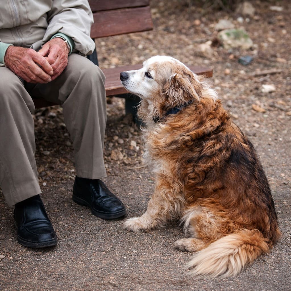 Небольшая рыжая собака вдруг запрыгнула на скамейку рядом с ним и заглянула в его глаза.