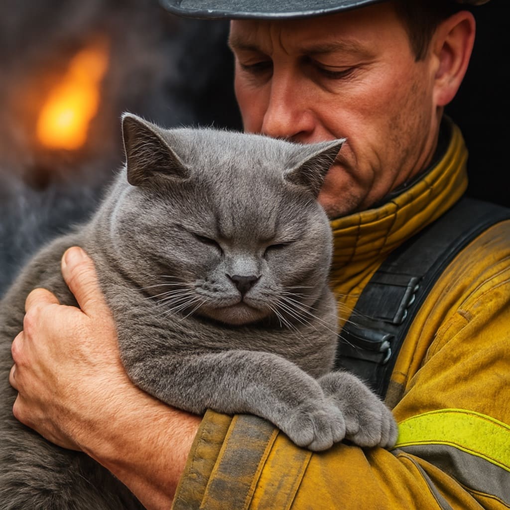 Через несколько минут один из пожарных вынес бездыханное тельце Маркиза. Кот был без сознания, его серая шерсть вся почернела от сажи.