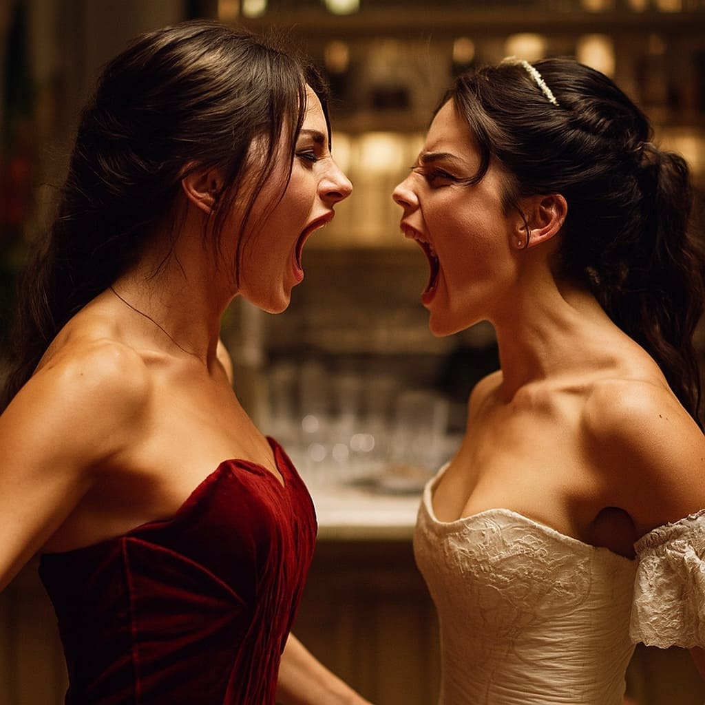 Вероника очнулась первой. Из её груди вырвался какой-то хриплый, сдавленный звук — не крик и не стон, а нечто животное. Словно из прекрасной фарфоровой куклы вырвался внутренний демон. Она сорвалась с места, запутавшись в подоле своего баснословно дорогого платья. Ткань жалобно зашуршала, нарушая мёртвое оцепенение зала. Она не смотрела на мужа, не смотрела на его окаменевших родителей. Она видела только одну цель — удаляющуюся спину сестры.