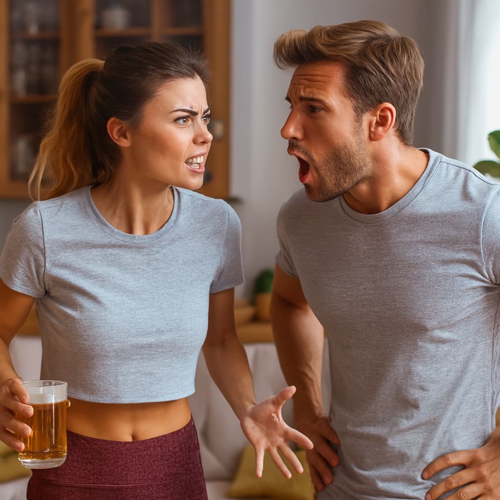 Он даже не повернул голову в её сторону. Единственное движение — он поднёс банку ко рту и сделал долгий, громкий глоток. Этот звук, шумный и глубокий, разнёсся по тихой квартире как пощёчина.