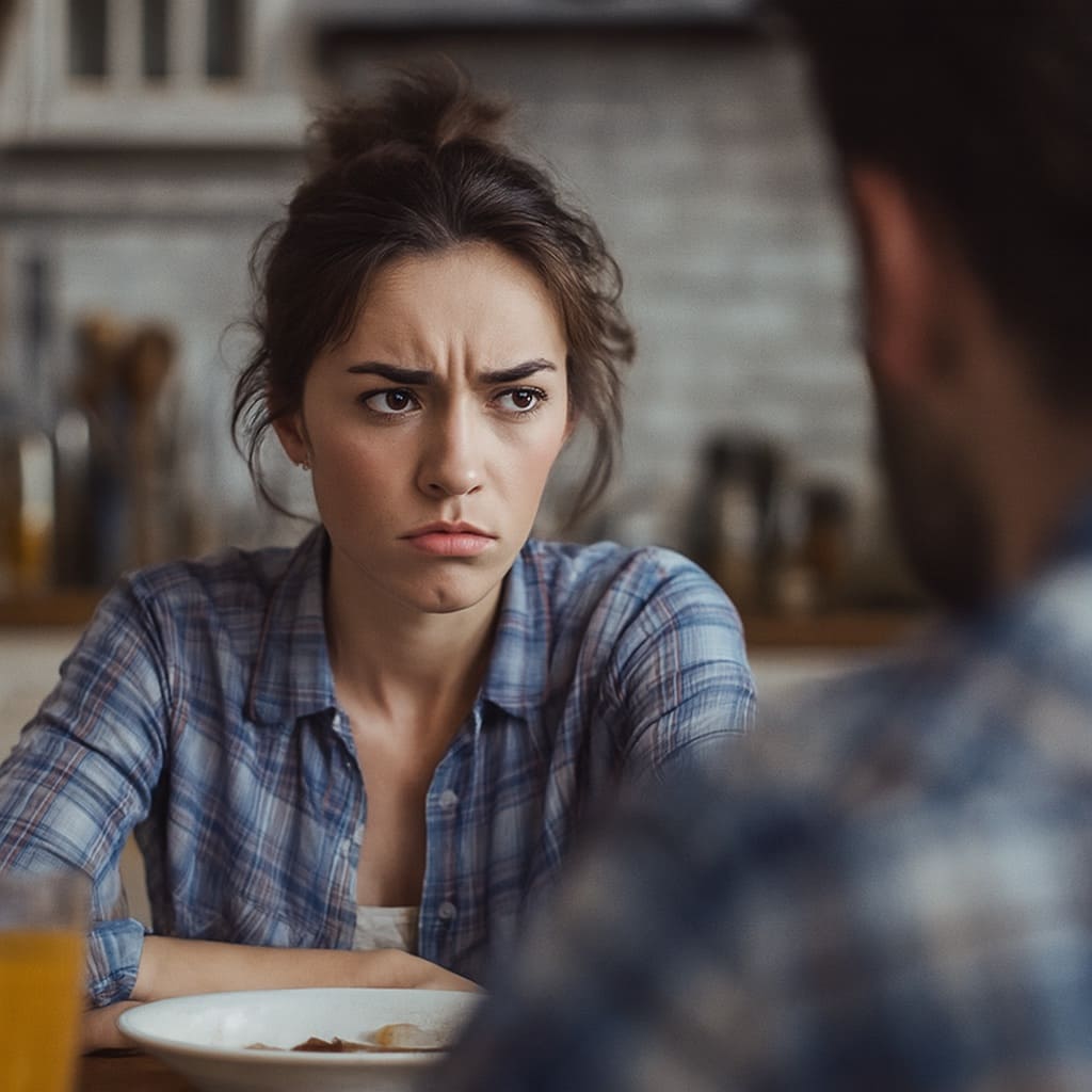 Анна медленно положила ложку. Звук металла о тарелку был громким. Она посмотрела на мужа, который притворялся, что поглощён едой.