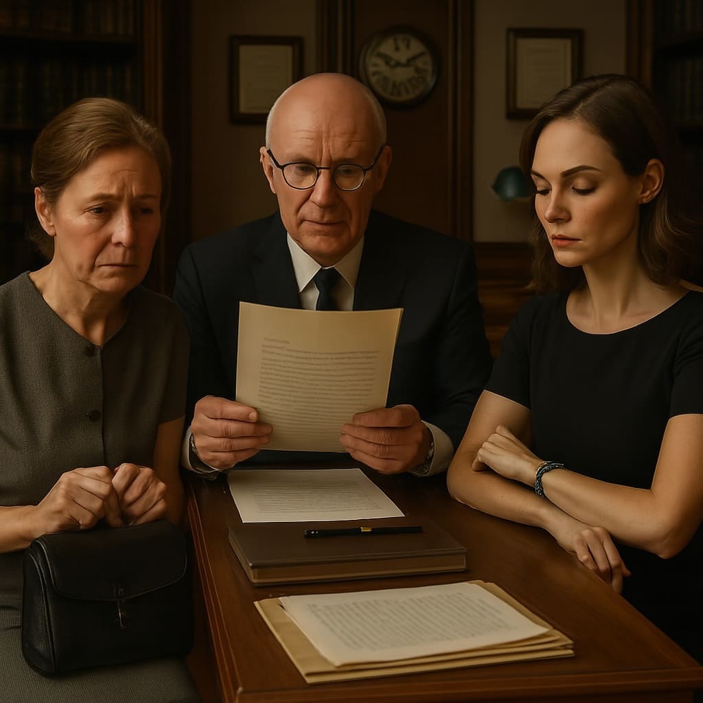 Юрист в строгом костюме приподнял очки на переносице и с нарочитой торжественностью раскрыл перед ними пергамент, от которого, казалось, исходил тонкий, едва уловимый аромат лаванды — это были любимые духи покойной Зинаиды Сергеевны.