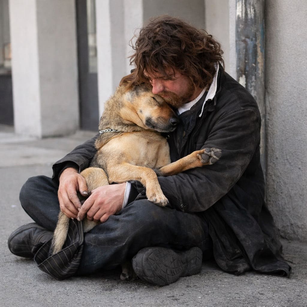 На тротуаре сидели двое. Старенький плед, положенный на несколько картонных коробок, чтобы было теплее. Большая собака держала перед лицом бомжа свою лапу и плакала. Плакал и бомж…