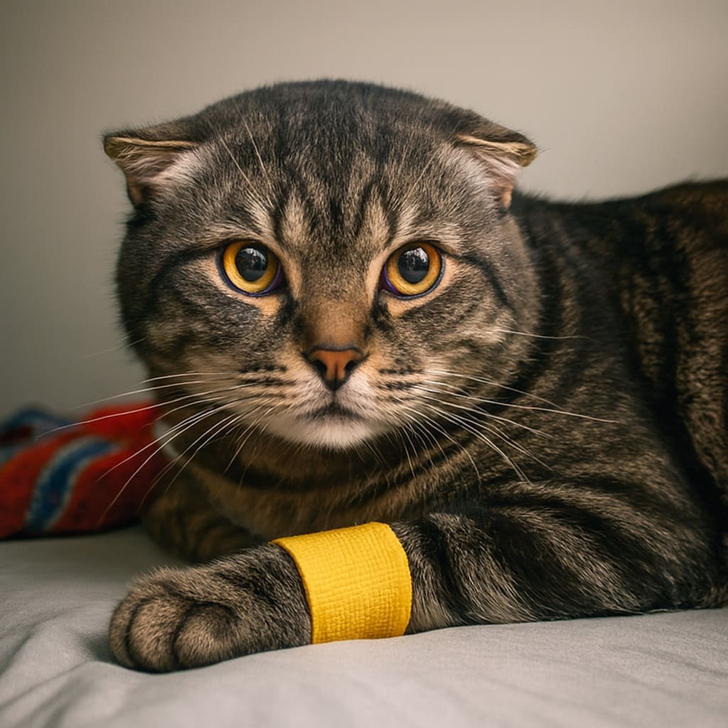 — Все хорошо, красавчик, — осторожно осматривал кота парень.