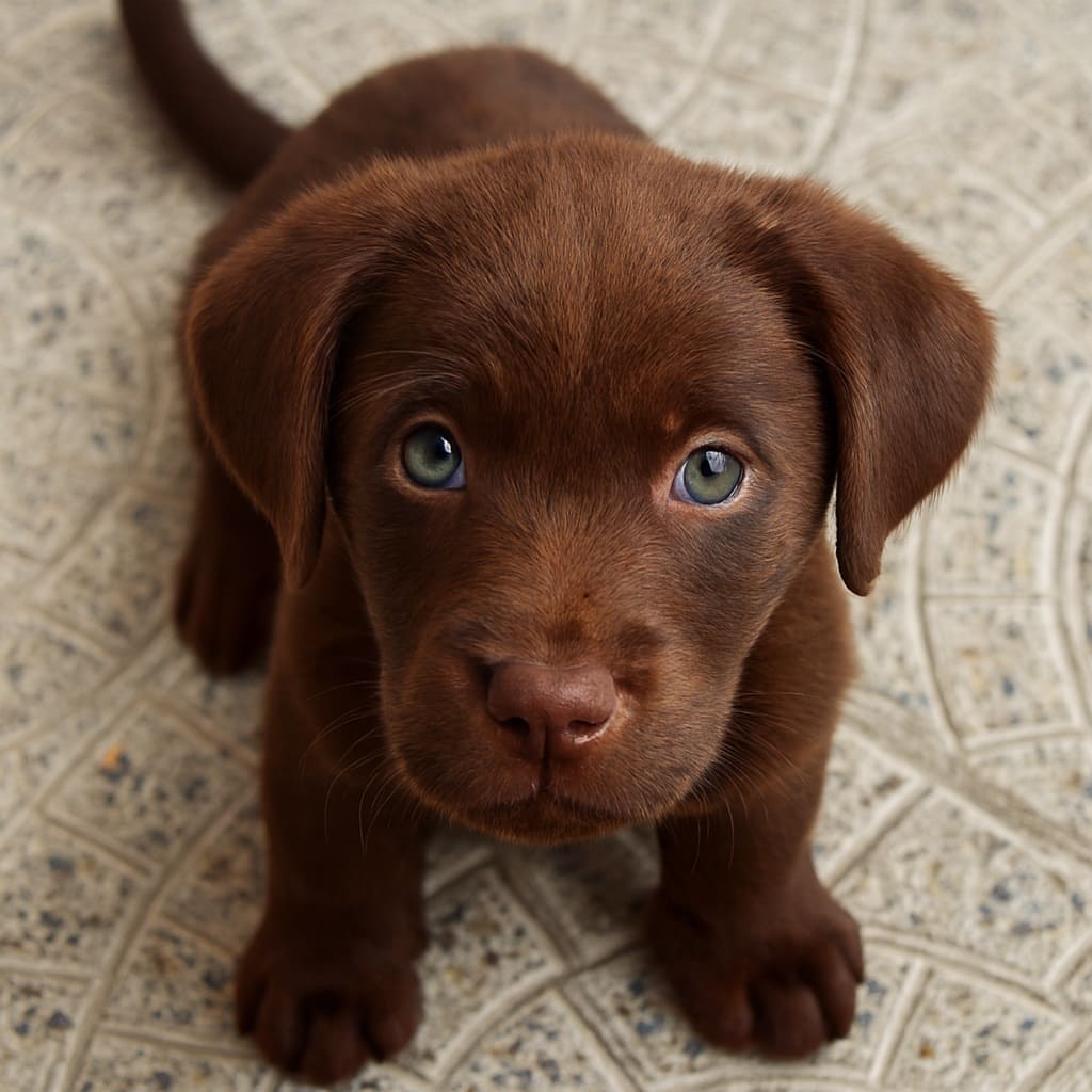 На вид ей было лет восемь или девять. В руках у неё был щенок шоколадного окраса с голубым ошейником, и она постоянно обращалась к нему, советуясь по поводу той или иной игрушки.
