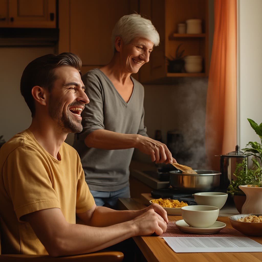 — Вмешивается? — Денис листал что-то в телефоне, не поднимая глаз. — Мама просто помогает. И с ребёнком сидит, и еду готовит.