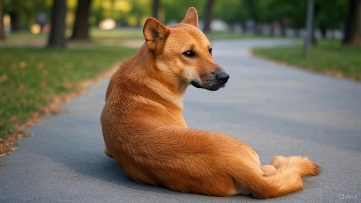 Когда Вера подошла к собаке, оказалось, что она не спала. Собака была довольно крупная, коричнево-рыжего окраса, со стоячими треугольными ушами и длинным хвостом.