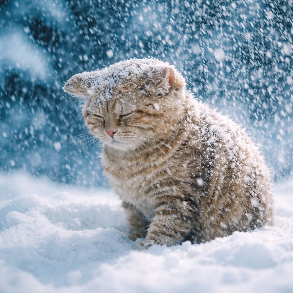 Пушок уткнулся лбом в снег – беда, когда кошка принимает такую позу – у нее уже нет сил держать голову…