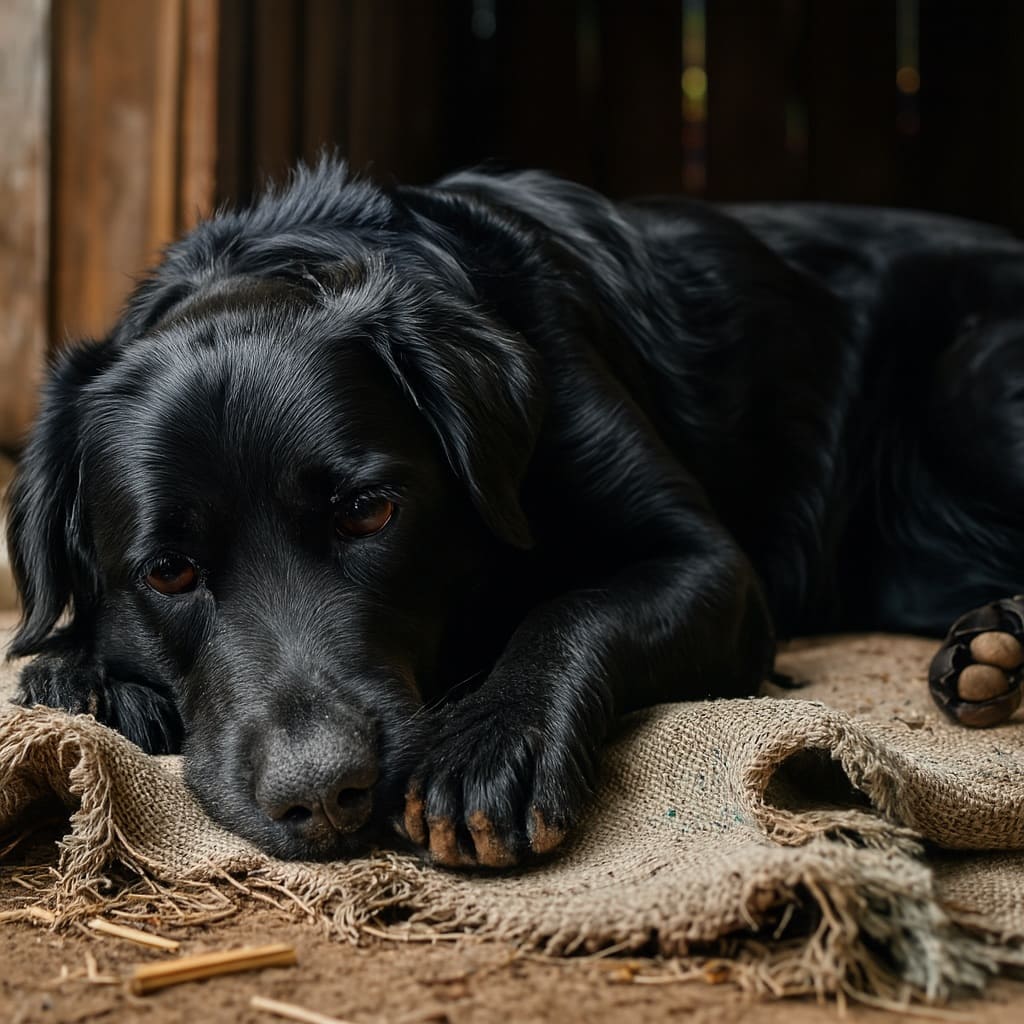 Осенний дождь настойчиво стучал по крыше старенького сарая, в углу которого на рваном тряпье лежал черный пёс по имени Уголёк. Его когда-то блестящая шерсть теперь казалась тусклой, а добрые карие глаза смотрели на мир с той осторожностью, которая совершенно несвойственна собачьей натуре. Уголёк был обычным дворнягой — из тех беспородных псов, которые, несмотря на все жизненные испытания, отличаются невероятной, особенной преданностью.